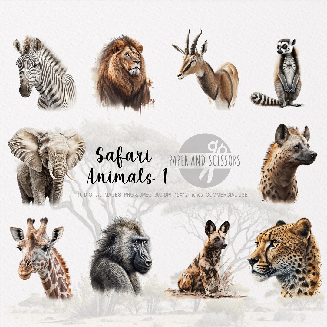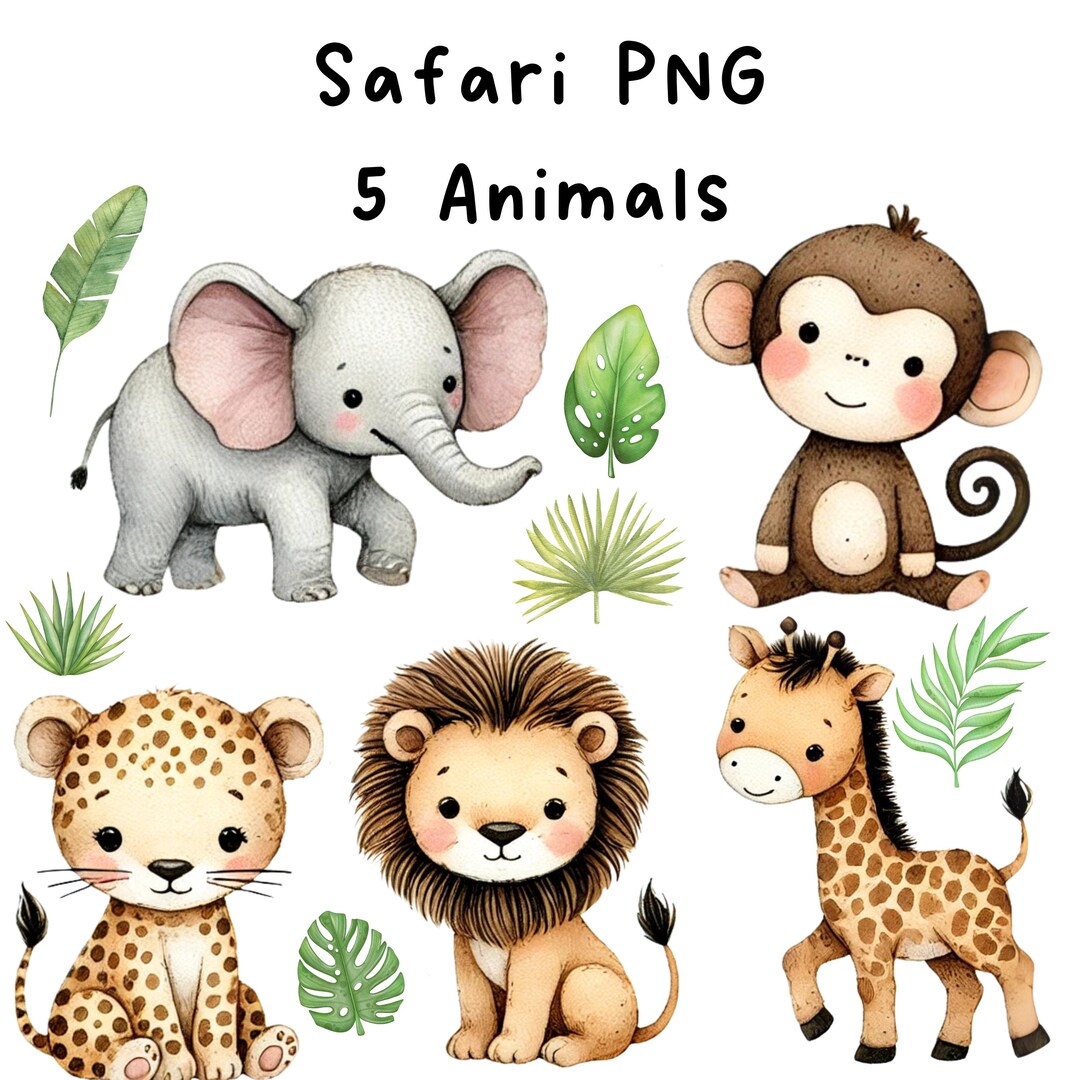 Safari Animals Clipart Png Digital Download Watercolour Etsy