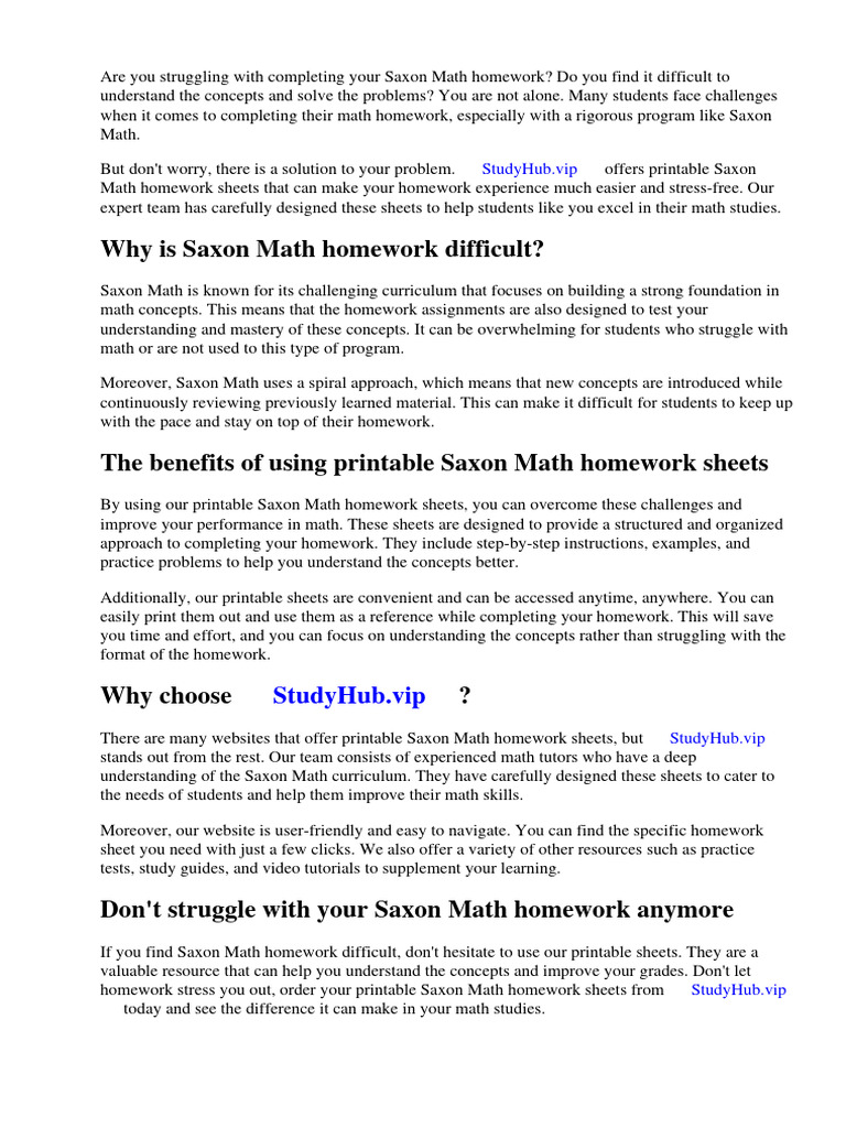 Printable Saxon Math Homework Sheets PDF Mathematics Worksheet