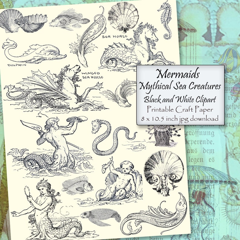 Printable Sea Creatures Clipart Mermaids Mythical Sea Etsy