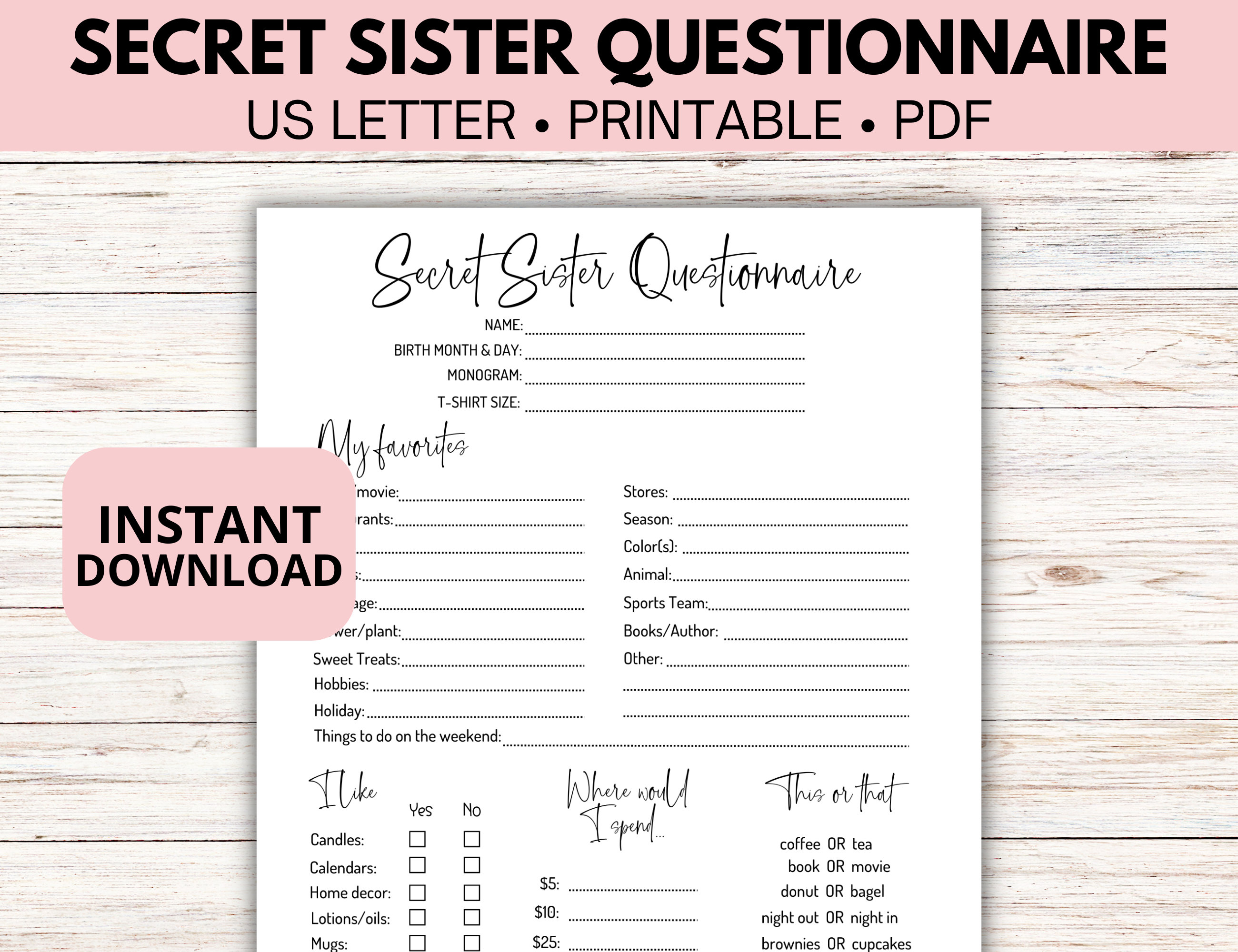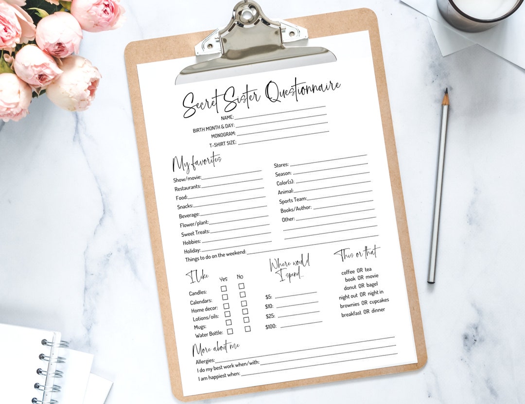 Secret Sister Questionnaire *printable* Etsy