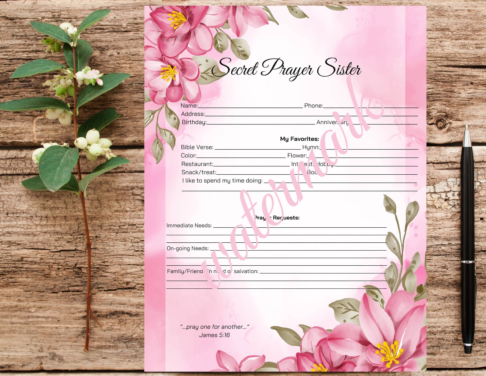 Secret Sister Questionnaire Printable