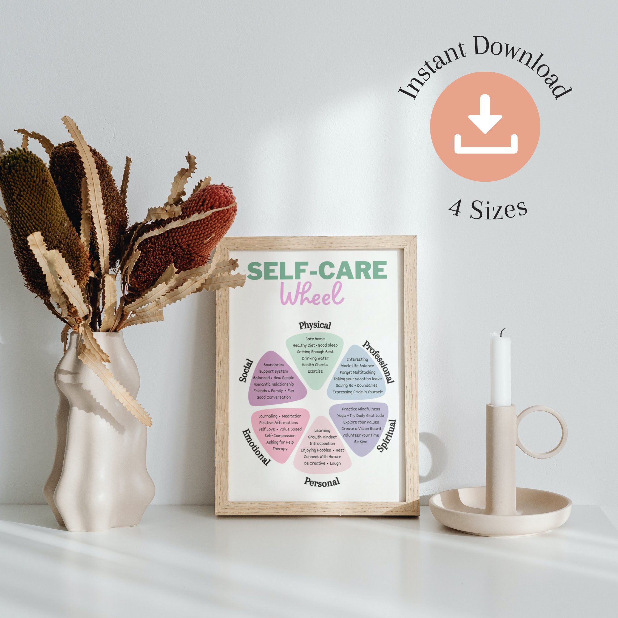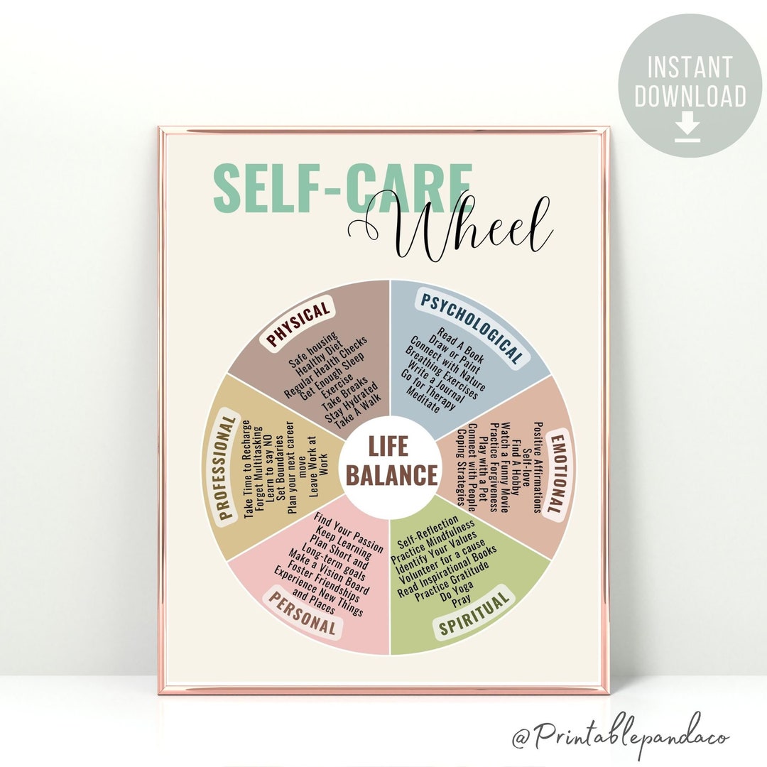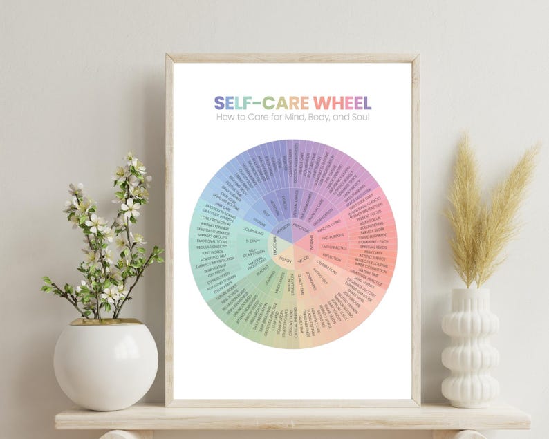 Self Care Wheel: Wall Art Digital Prints Decor Self care Healthy