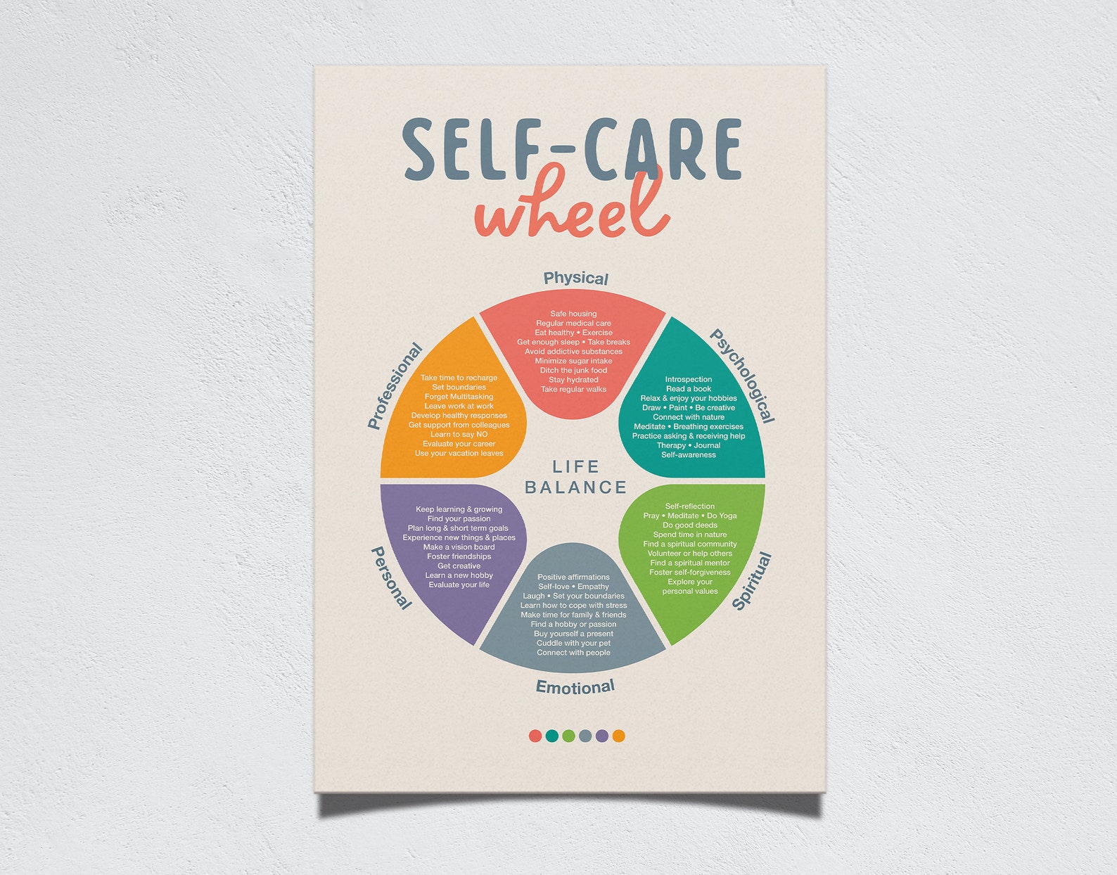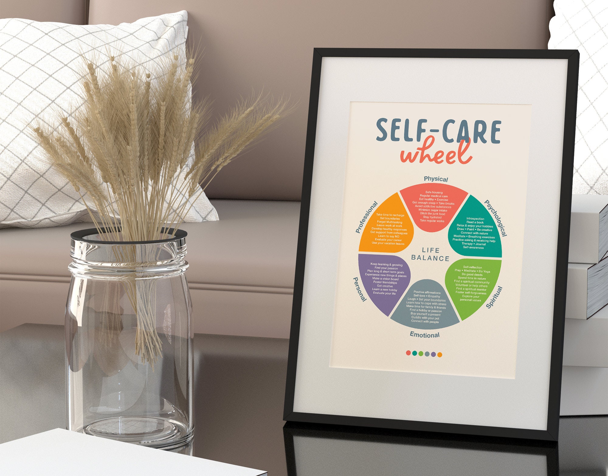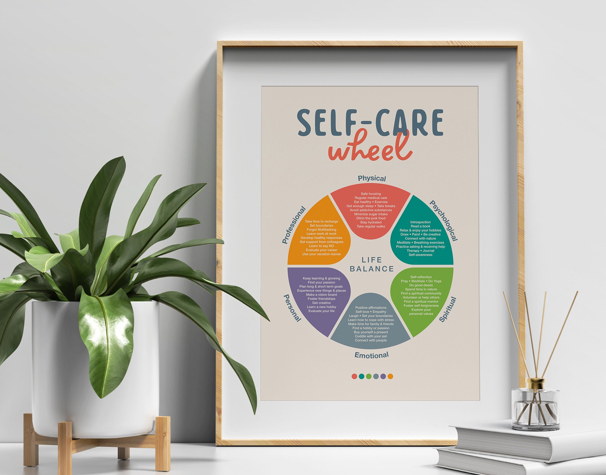 Self Care Wheel: Wall Art Digital Prints Decor Self care Healthy