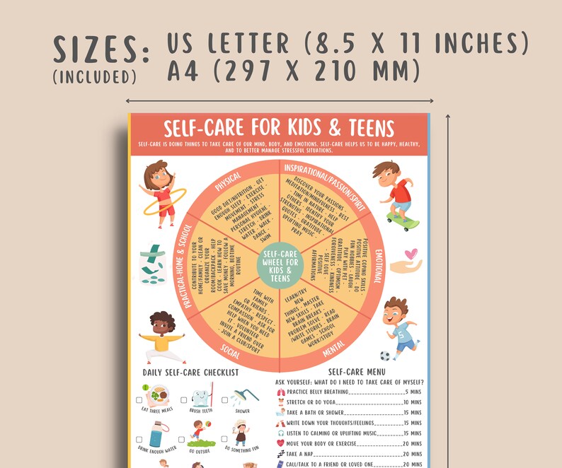 Self Care Wheel for Kids Teens Printable Poster Trauma Etsy UK