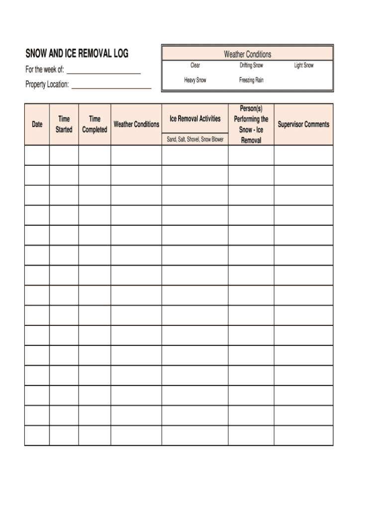 Printable Snow Removal Log Sheet Template