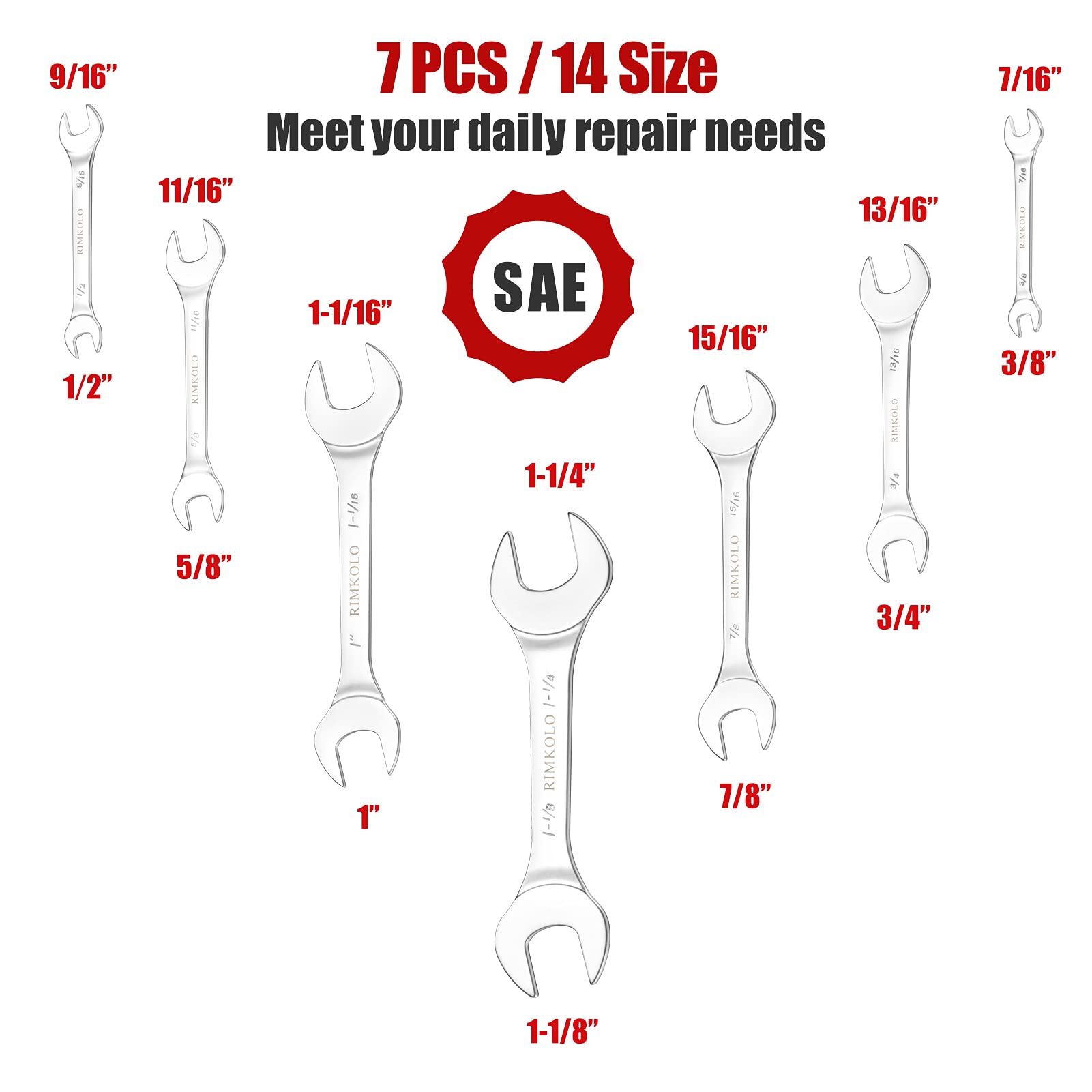Snapklik com : RIMKOLO Super Thin Open End Wrench Set 7 Piece SAE 3/8