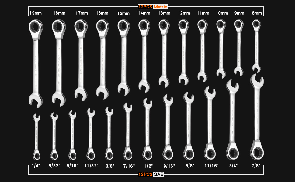 Qnkaa 24pcs Ratcheting Wrench Set with Rollup Pouches Metric (8mm to