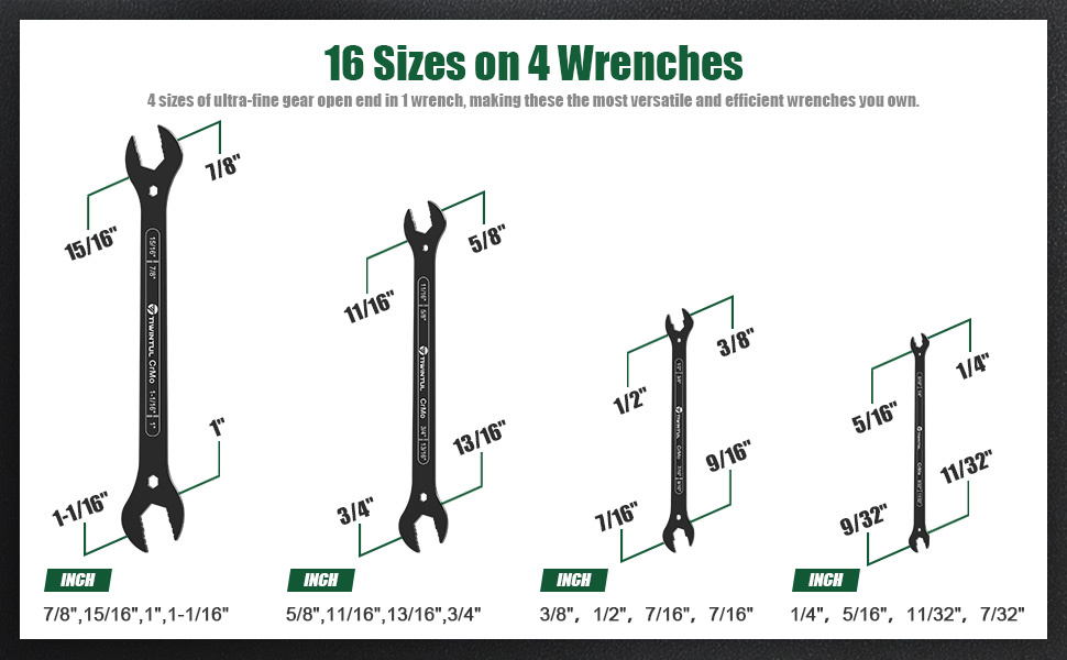 TIWINTUL 4 in 1 Super Thin Open End Wrench Set SAE 4 Piece 1/4 quot 5/