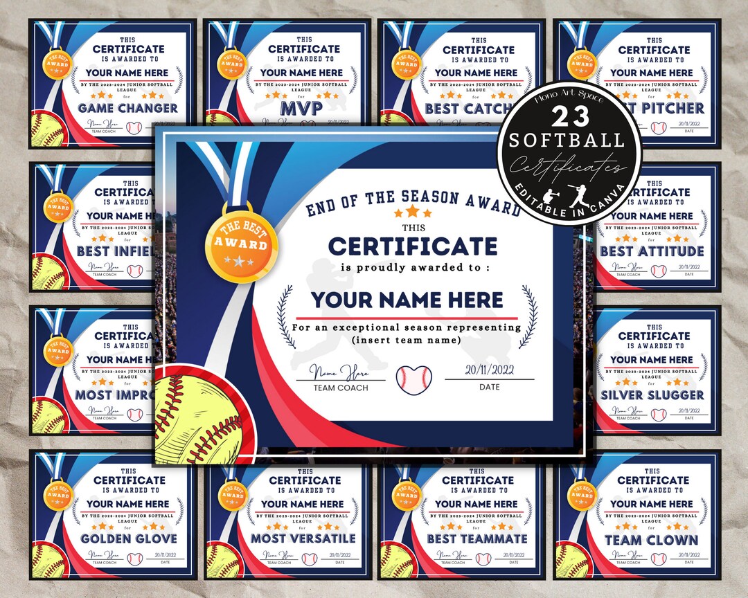 Softball Award Certificate Editable Canva Template Printable Etsy