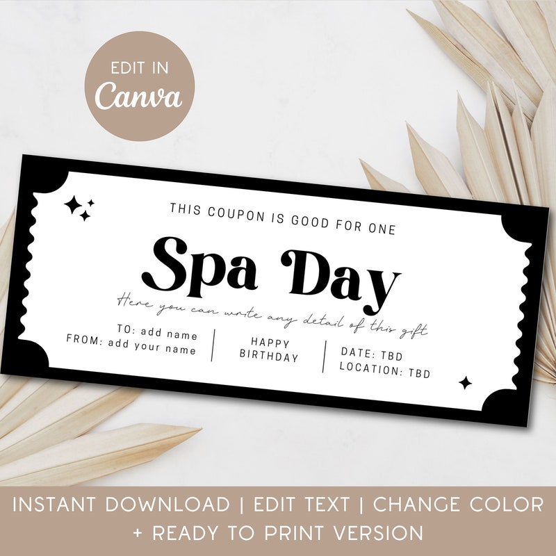 Spa day gift voucher printable editable spa gift certificate Etsy
