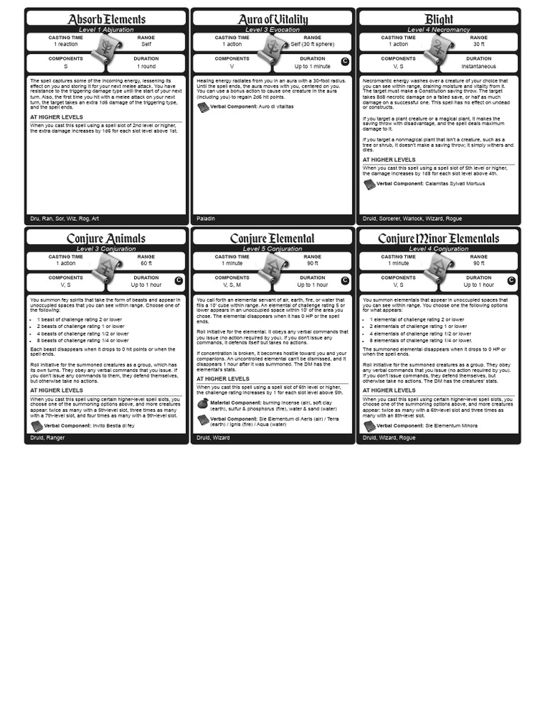 Dnd 5e Printable Spell Cards