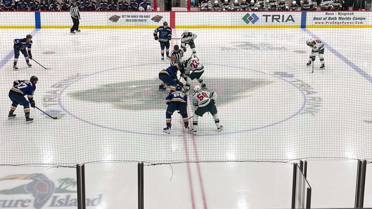 Carbonneau scores late helps Blues prospects to 6 4 win vs Wild St