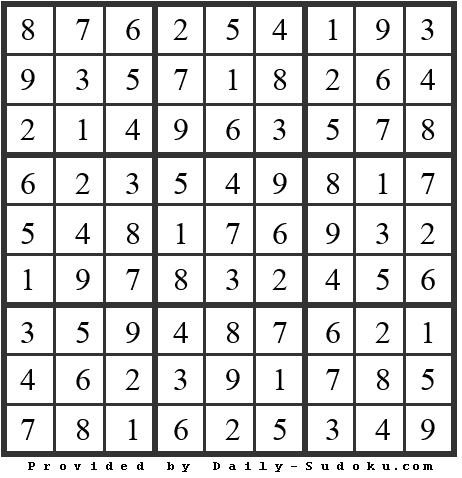 Print Sudoku Solution 2025 10 18 Level hard Daily Sudoku