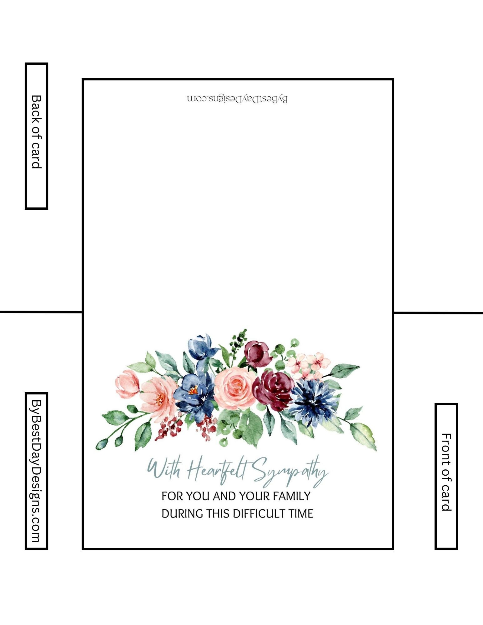 Sympathy Printable Card / Instant Download PDF / Card Template Etsy