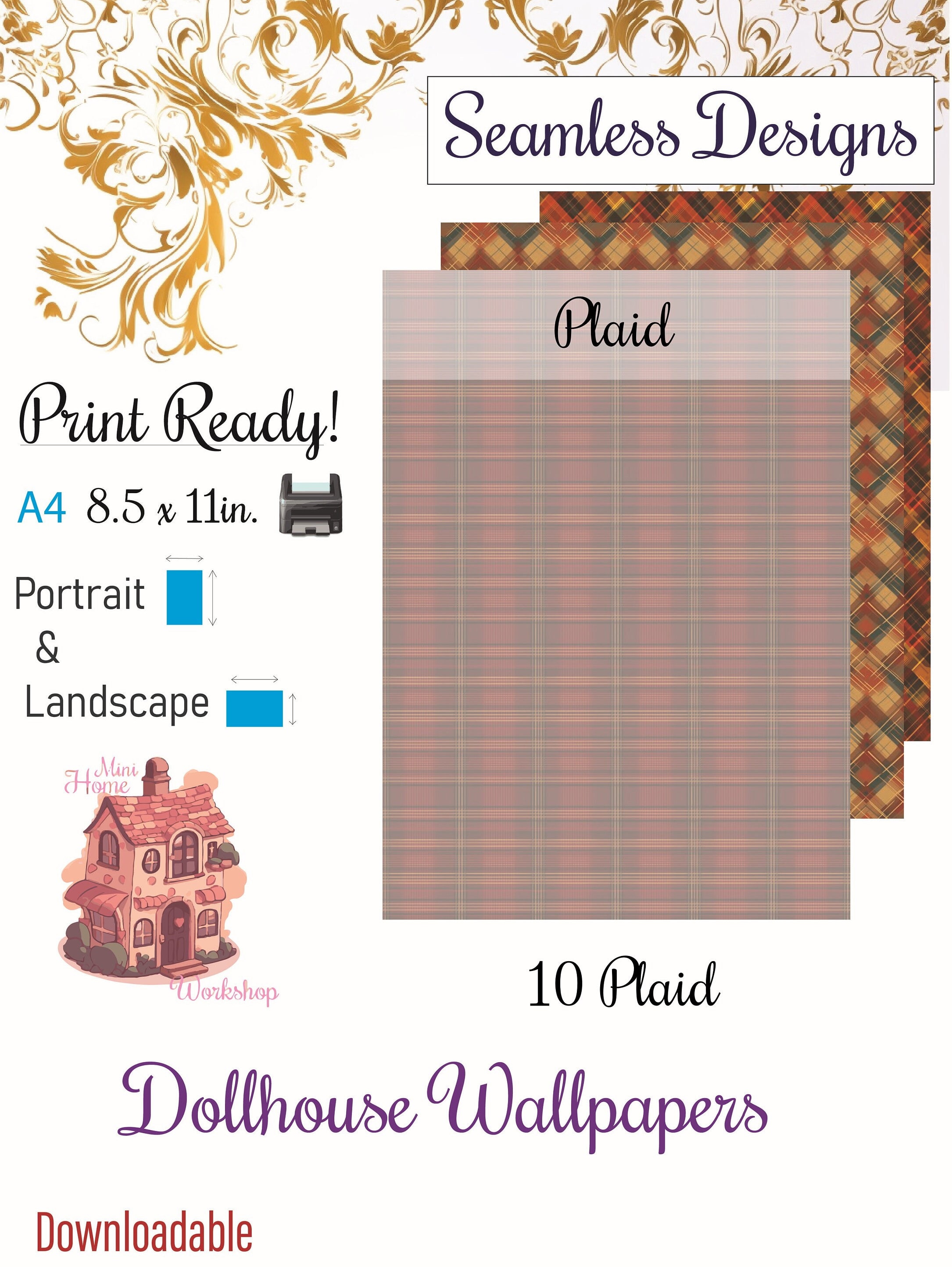 10 Printable Dollhouse Wallpaper Digital Download 1 12 Scale Plaid