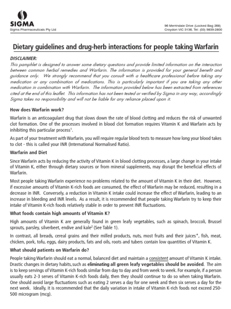 Here are some of the images for Printable Warfarin Diet Sheet that we found in our website database.