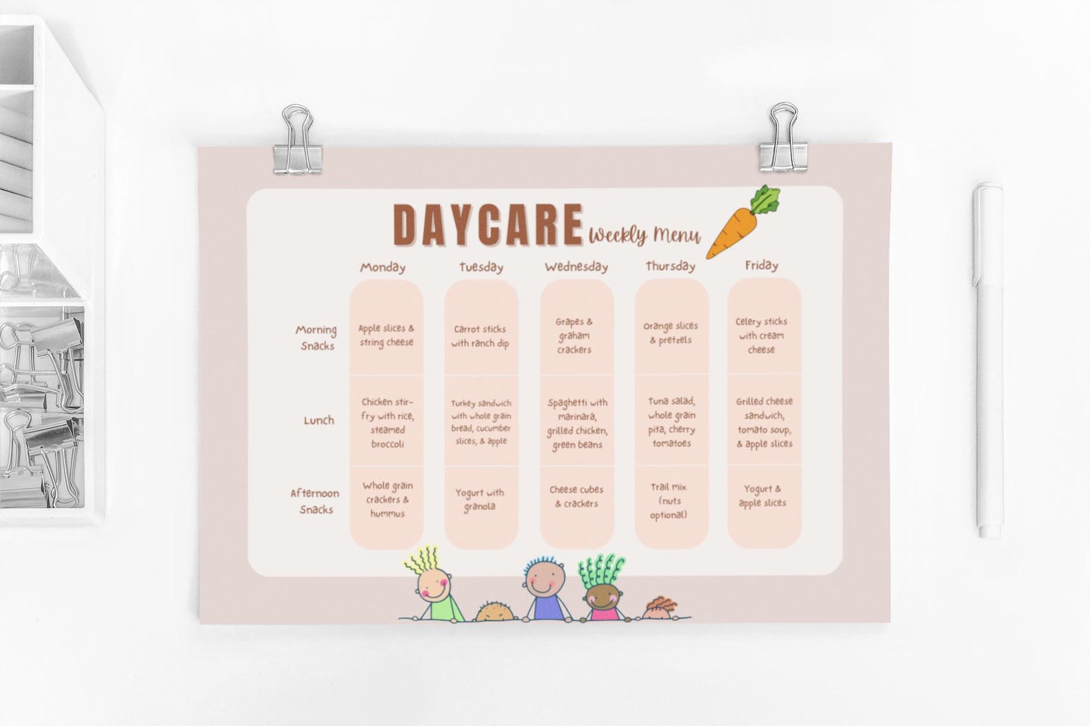 Daycare menu template printable editable weekly menu for daycare