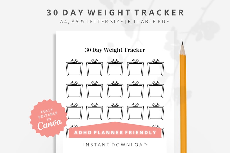 Weight Loss Tracker Printable Gorgeous Digital Weekly Etsy Ireland