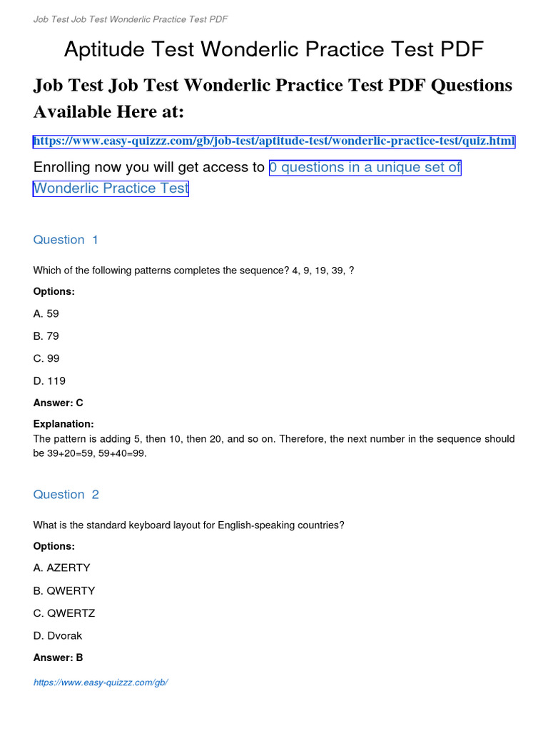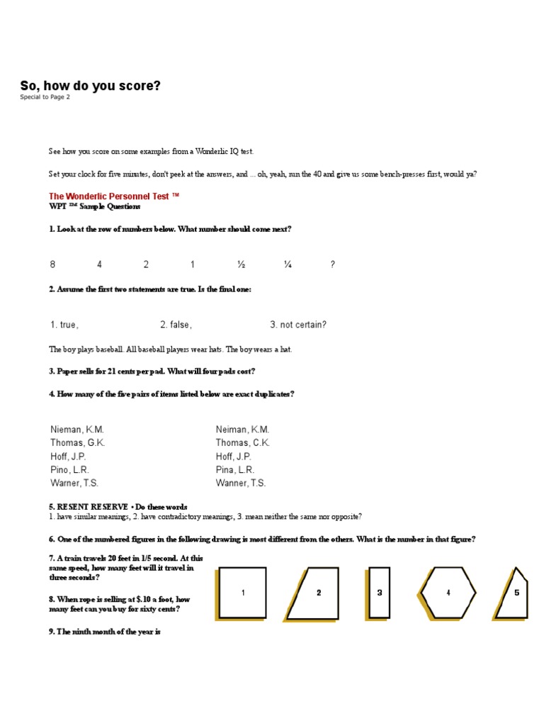 Free Printable Wonderlic Test Printable Templates: Your Go To
