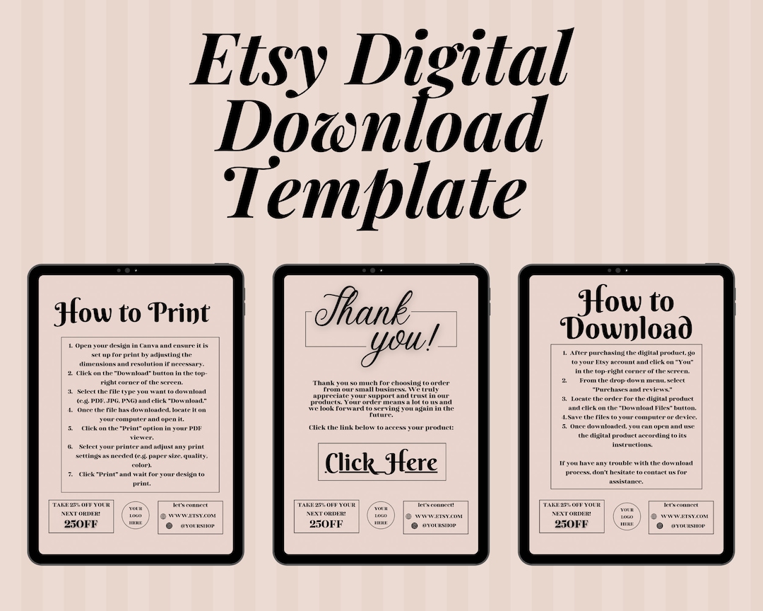 Etsy Digital Product Templates Thank You Note for Digital Downloads