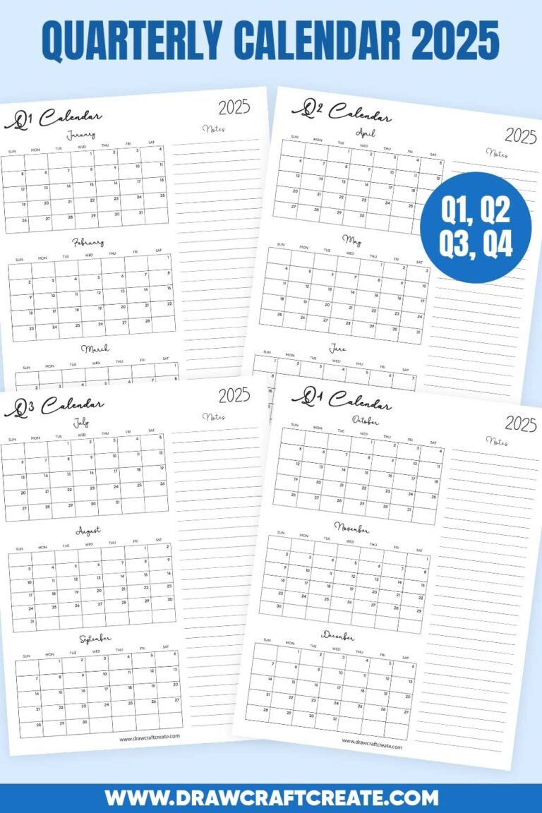 Quarterly Calendar 2025 Q1 Q2 Q3 Q4 Printable Templates