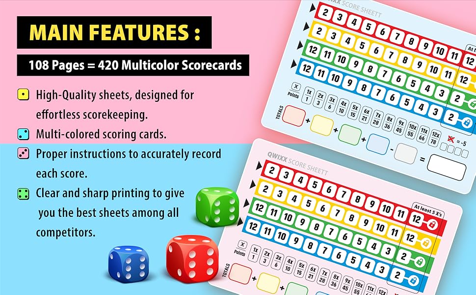 Qwixx Score Pads: 420 Small Colored Sheets For Quixx Board Game Lovers