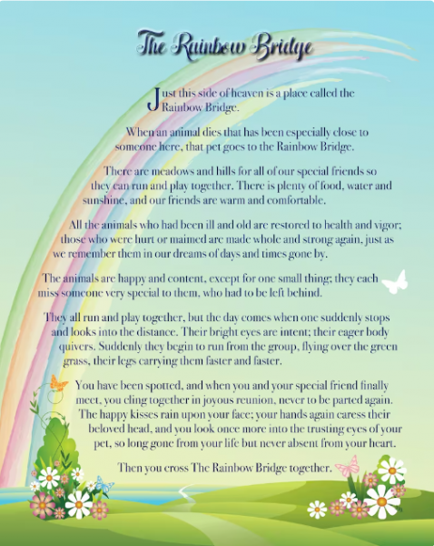 Printable Rainbow Bridge Memorial Pet Poem For the Love of Food