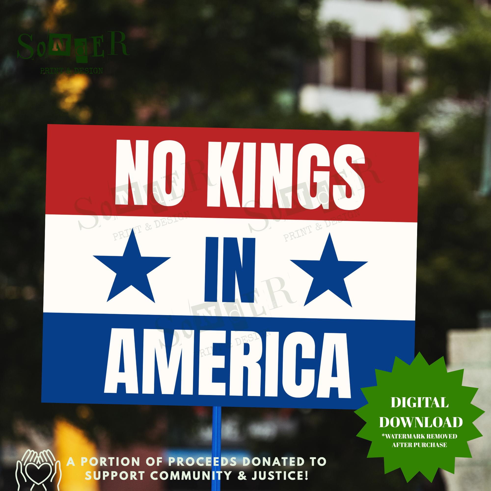 No Kings in America Printable Protest Sign INSTANT DOWNLOAD for