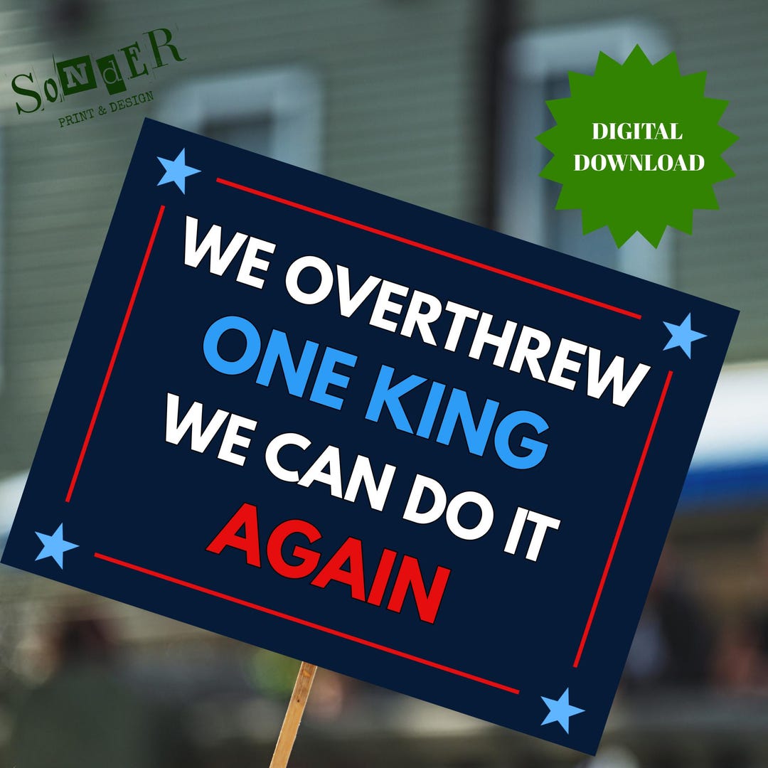 We Overthrew One King Printable Protest Sign No King #39 s Day Bold