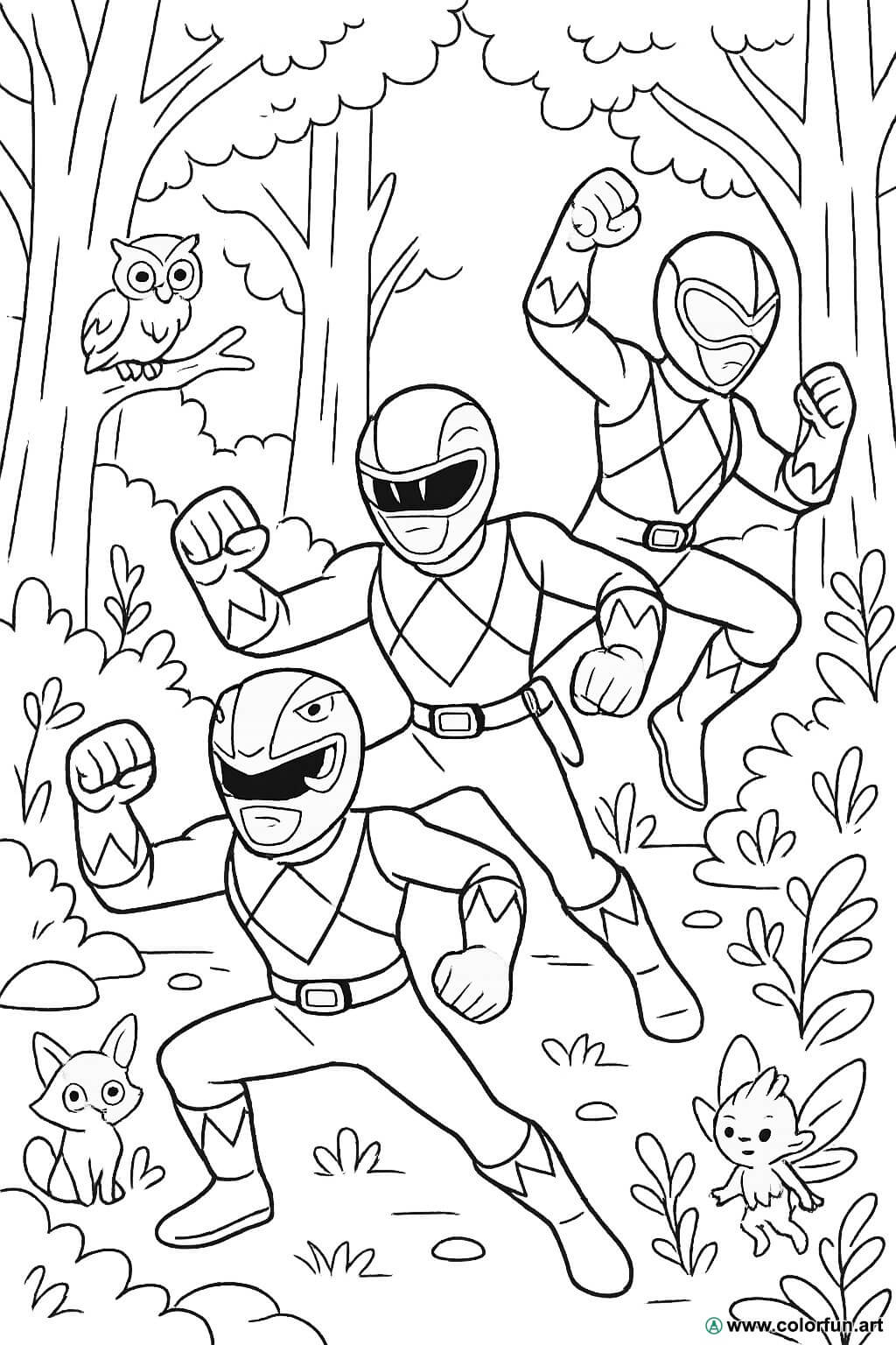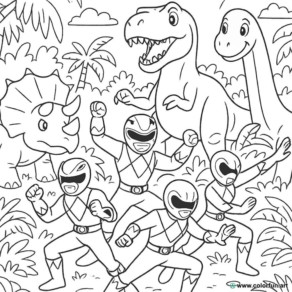 Power Rangers and dinosaurs coloring page Download or Print for free