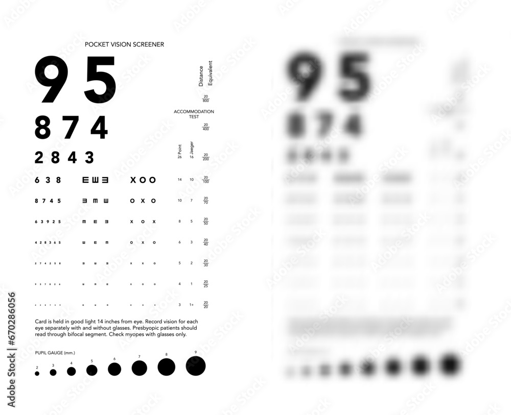 Rosenbaum Pocket Vision Screener Eye Test Chart Medical Illustration