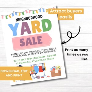 CANVA Editable Yard Sale Flyer Template Neighborhood Garage Sale Sign