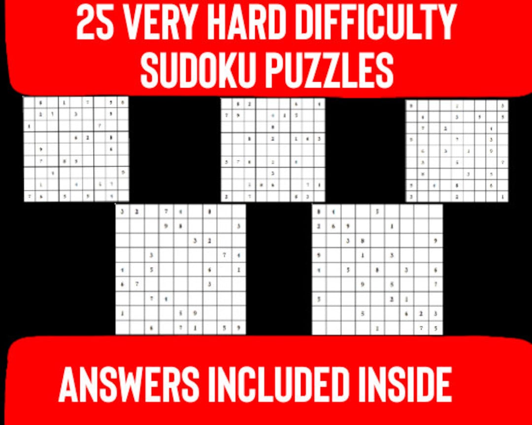 Printable Sudoku Puzzle Bundle Very Hard Sudoku Puzzle Pack for Adults