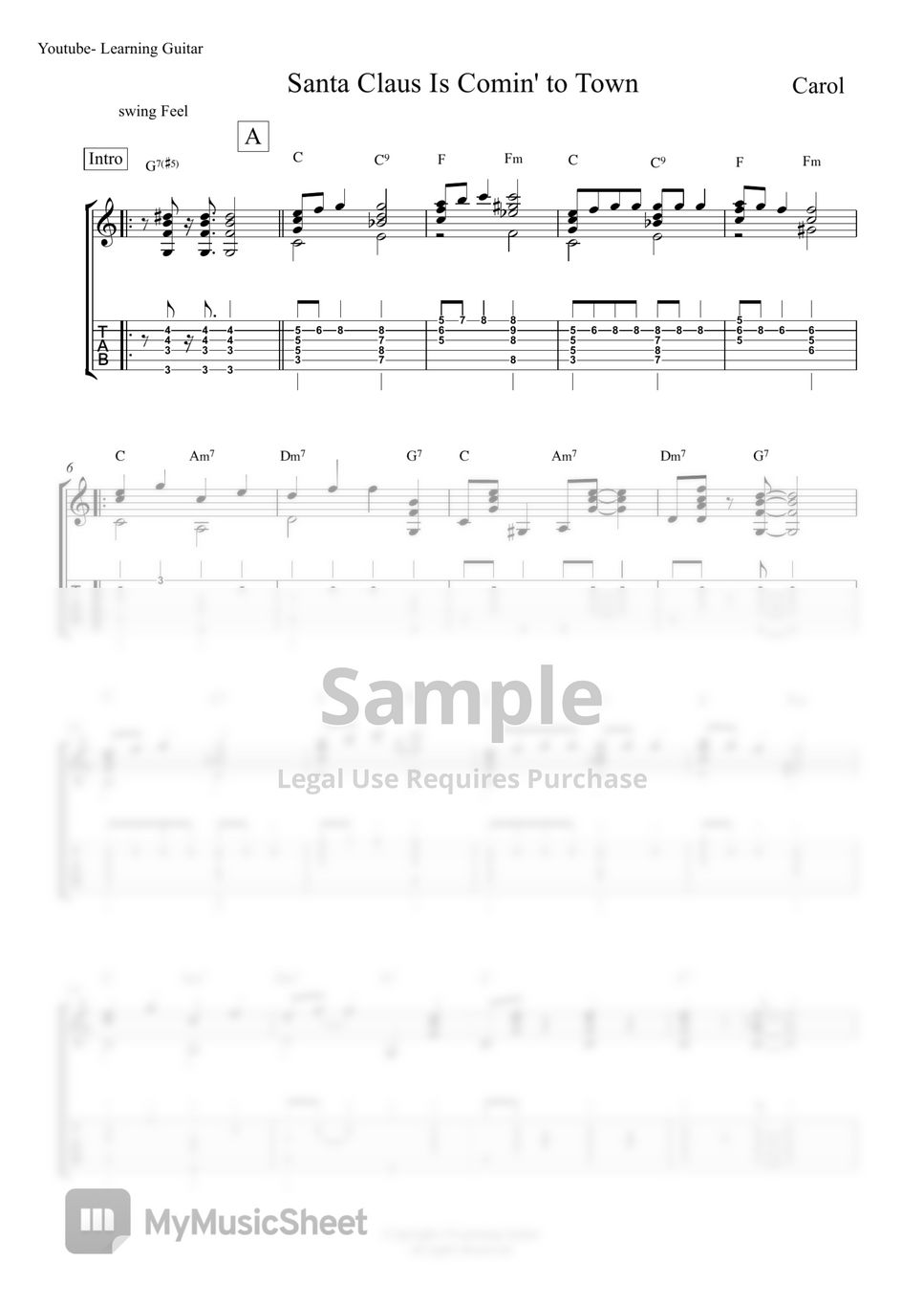 Carol Santa Claus Comin #39 to Town (Fingerstyle TAB) Sheets by Learning