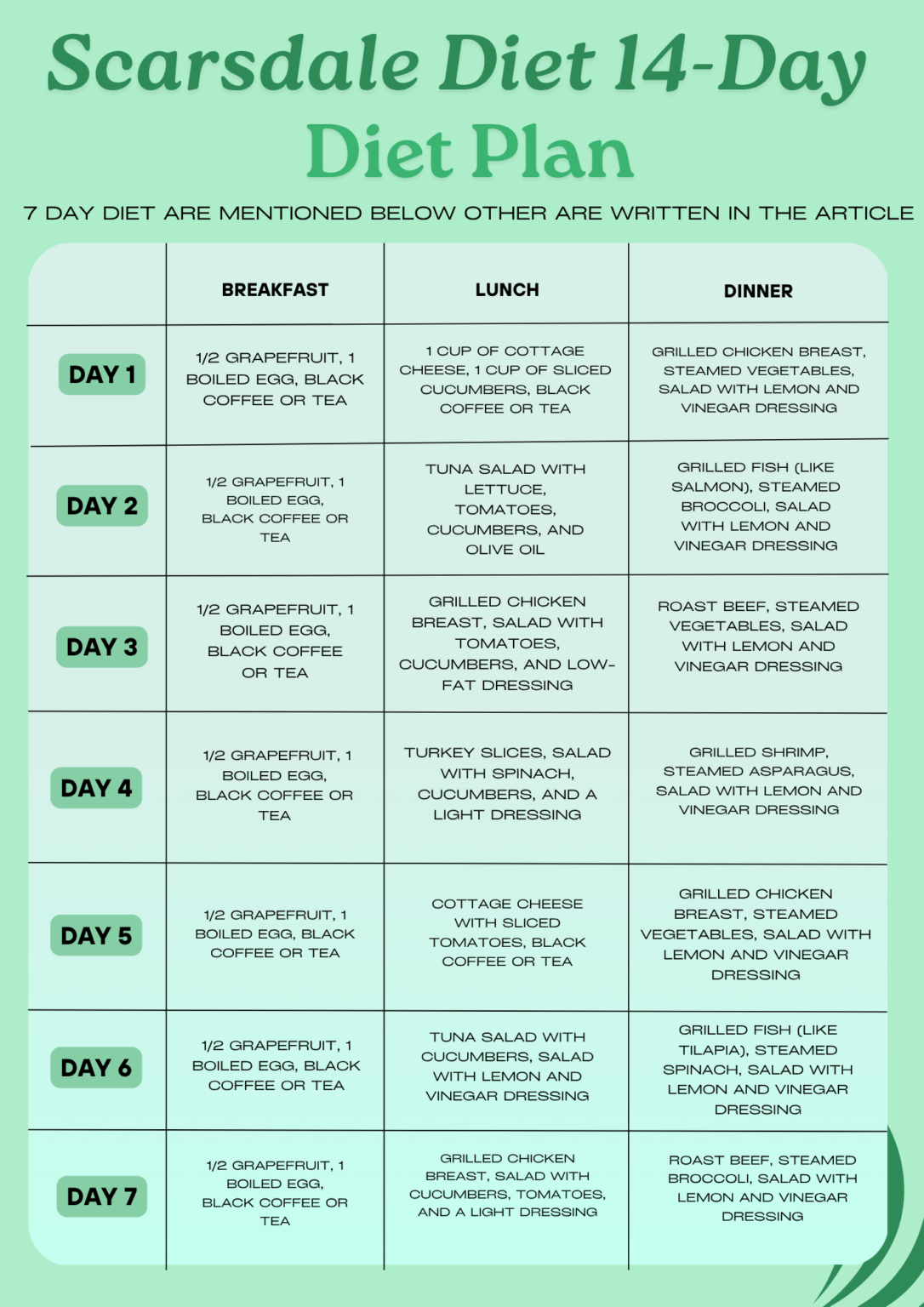 7 Day Scarsdale Diet Meal Plan (PDF Menu Alternatives) Medmunch