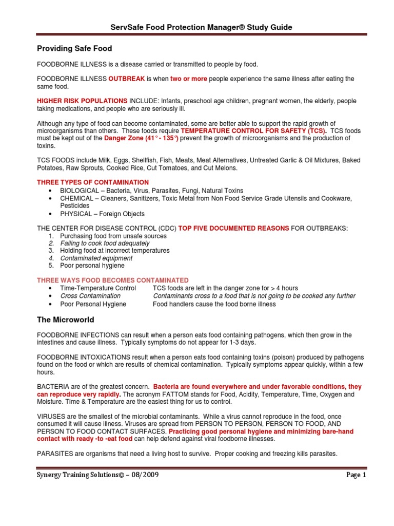 ServSafe Study Guide Synergy Foodborne Illness Food Safety