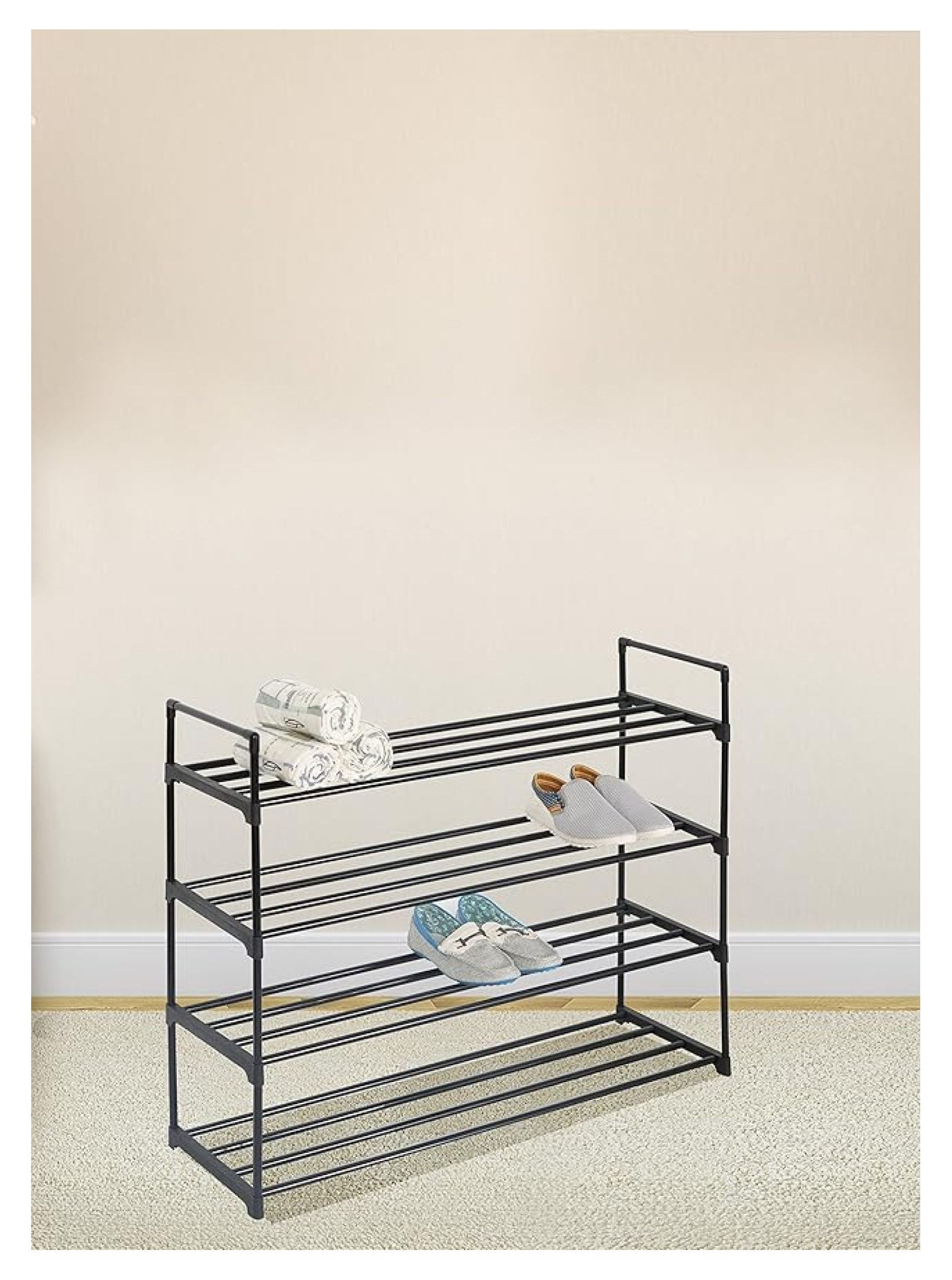 Black 4 Tier Shoe Rack Shoe Tower Shelf Storage Organizer Cabinet