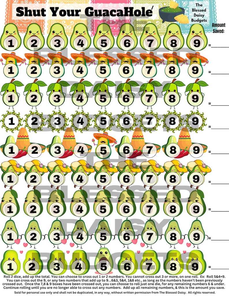 Shut the Box Savings Savings Challenge Game Shut Your Guacahole