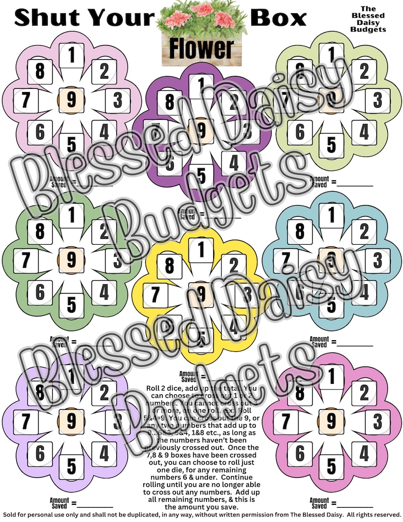 Shut Your Flower Box/shut the Box/shut the Box Savings Challenge/shut