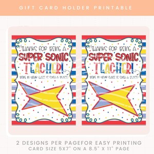 Gift Card Holder Teacher Appreciation Super Sonic Gift Card Holder