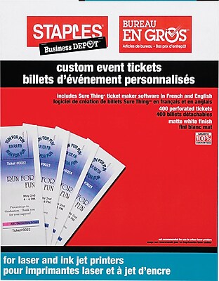 Staples Matte White Printable Tickets 2 13 x 5 5 8/Sheet 50/Sheets