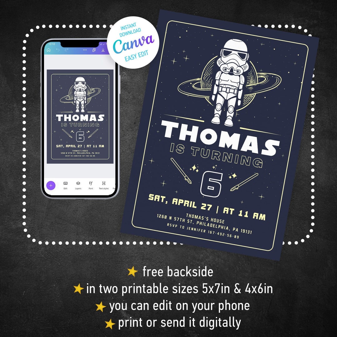 Printable Birthday Invitation Star Invite Wars Invitation Darth