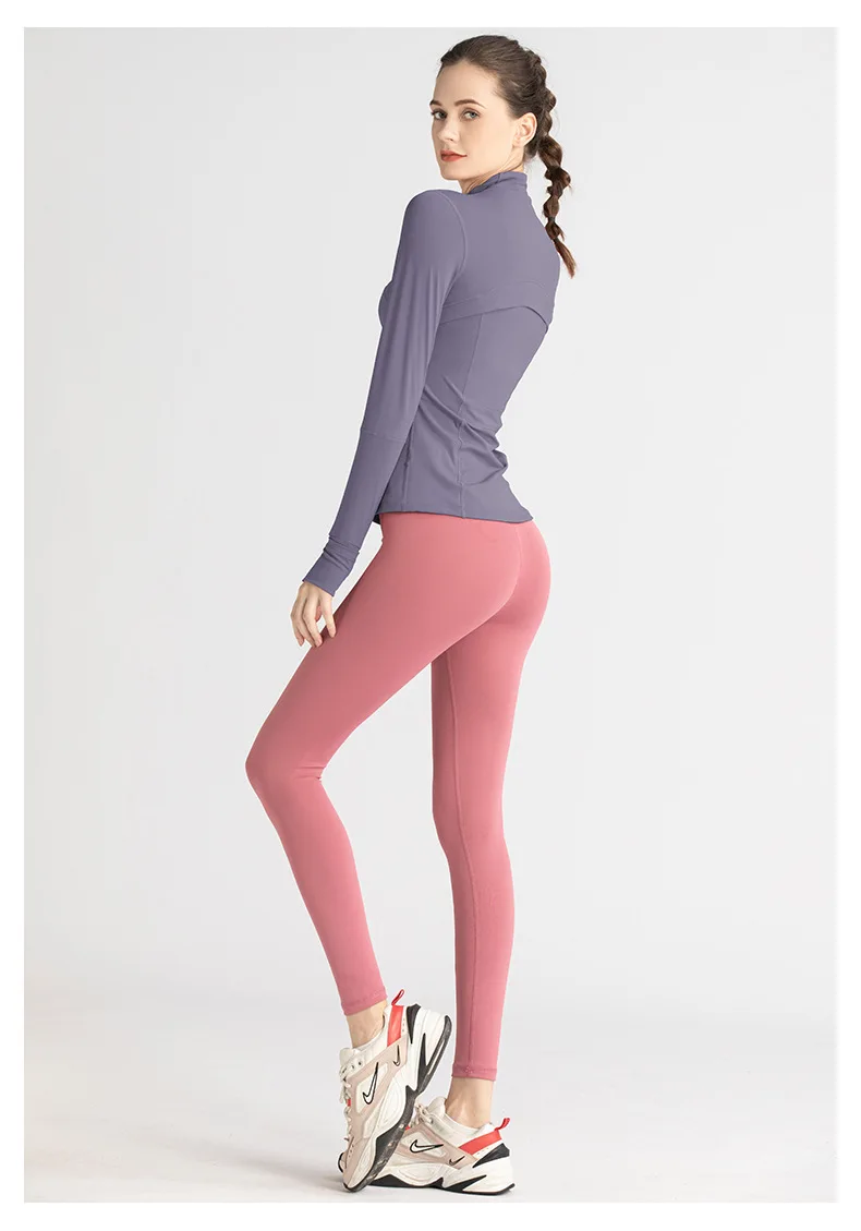 High Elastic Long Sleeve Full Zip Running Slim Fit Yoga Jacket With