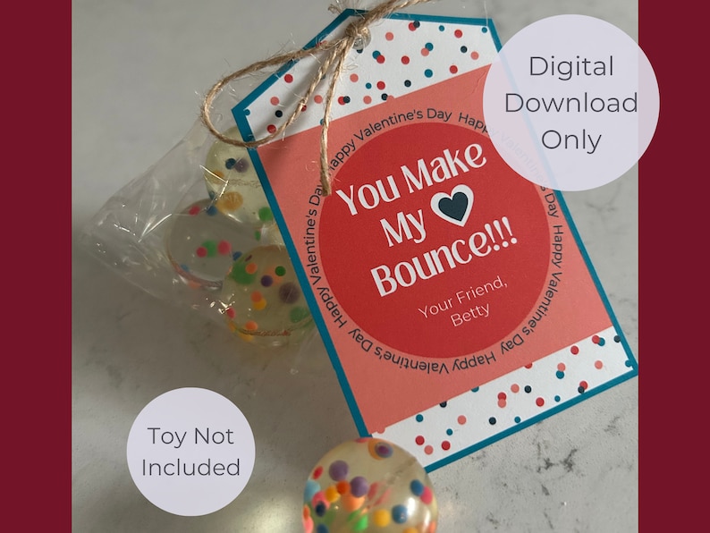 Bouncy Ball Valentine Printable and Editable Digital Download (print