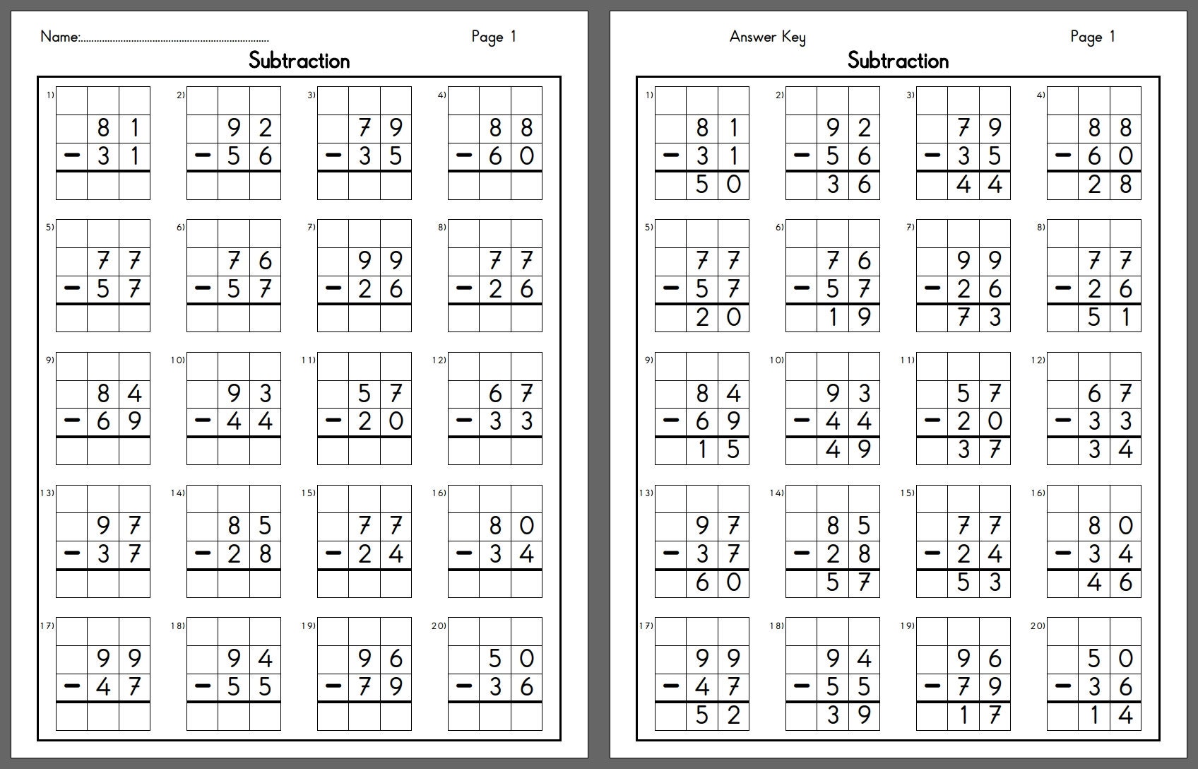 Subtraction Worksheets Printable PDF Subtraction worksheets Writing