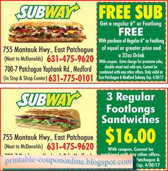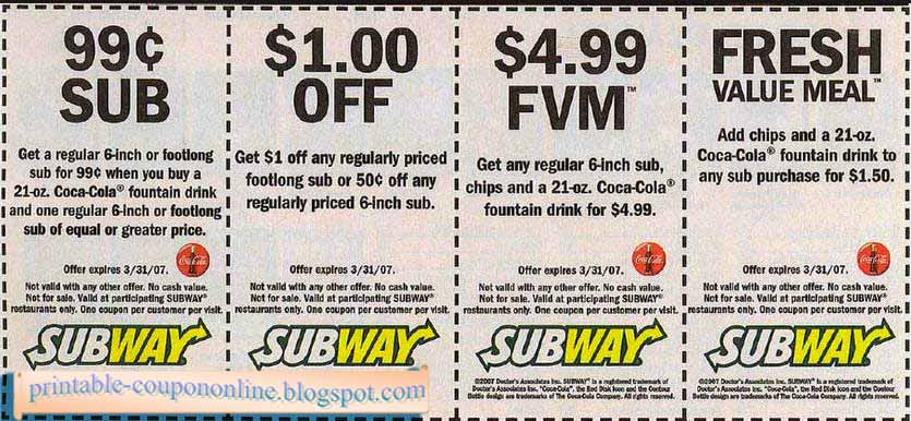 Here are some of the images for Subway Coupons Printable that we found in our website database.