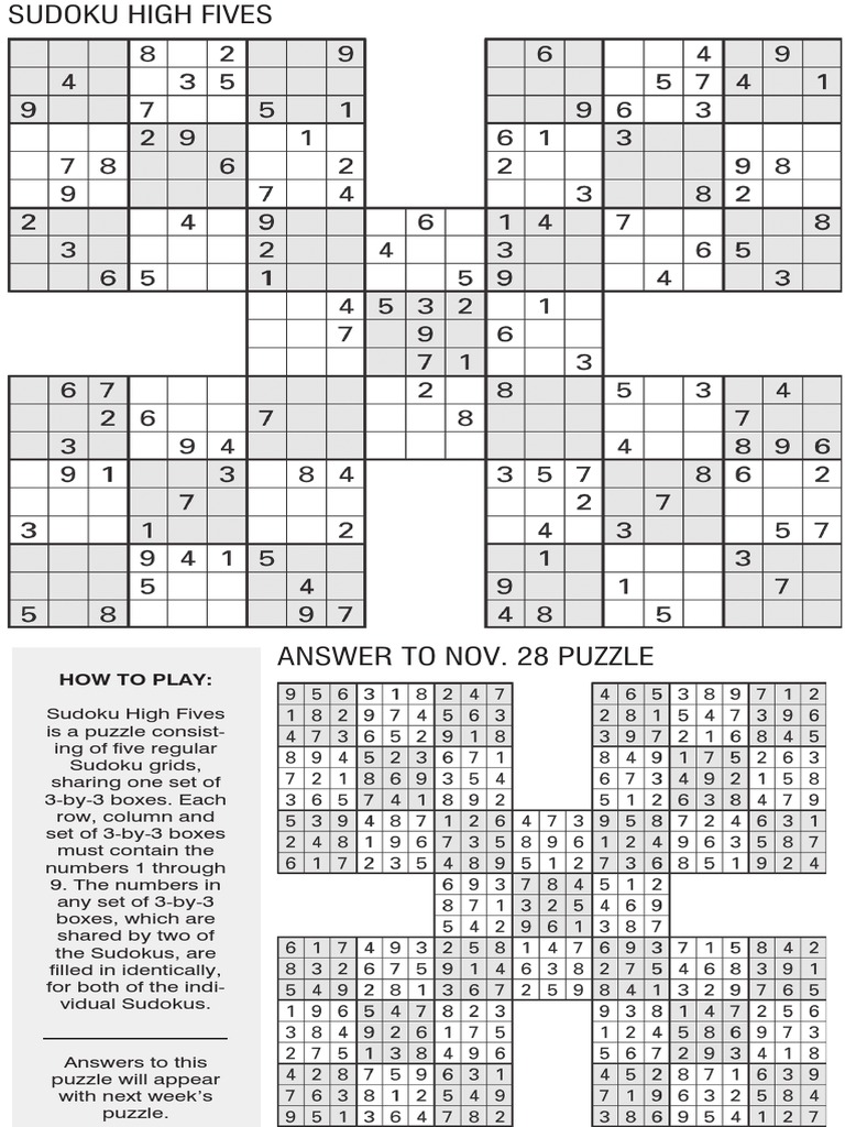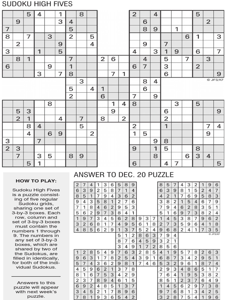 Printable Sudoku High Five Dec 7 PDF