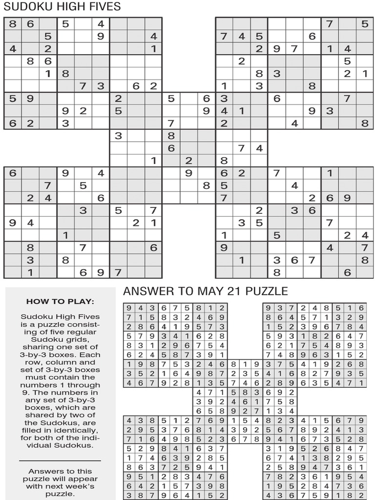 Samurai Sudoku Grid 10 Free PDF Printables Printablee