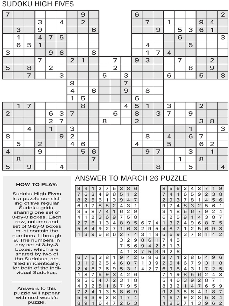 Printable High Five Sudoku March 21 PDF