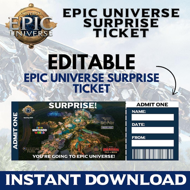 Epic Universe Ticket: Printable and Editable DIGITAL DOWNLOAD Gift Pdf